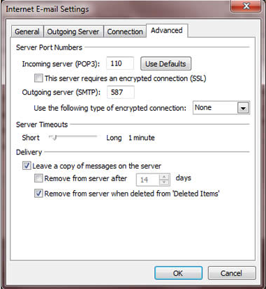 -Select “Leave a copy of messages on the server” if you want to access your emails through your webmail or other email client other than your Ms Outlook 2010.