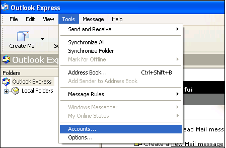 “Tools” menu in Outlook Express.