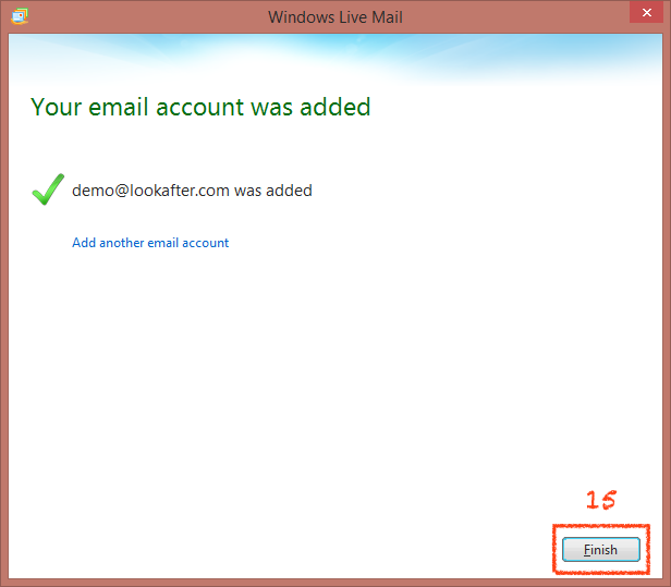 Your email account has been successfully added. Click [Finish] to close the window.