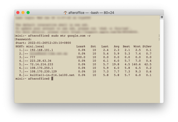 If you feel that accessing to our service is slow, or it could not be reached, we may ask for an MTR report, which helps us trace your network traffic along its path to the server.