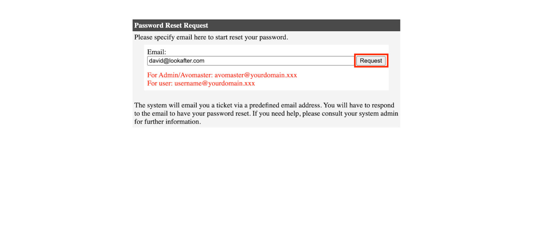 1. Go to your Staff Login page or Lookafter Client Login page, and click on the Forgot Password link.