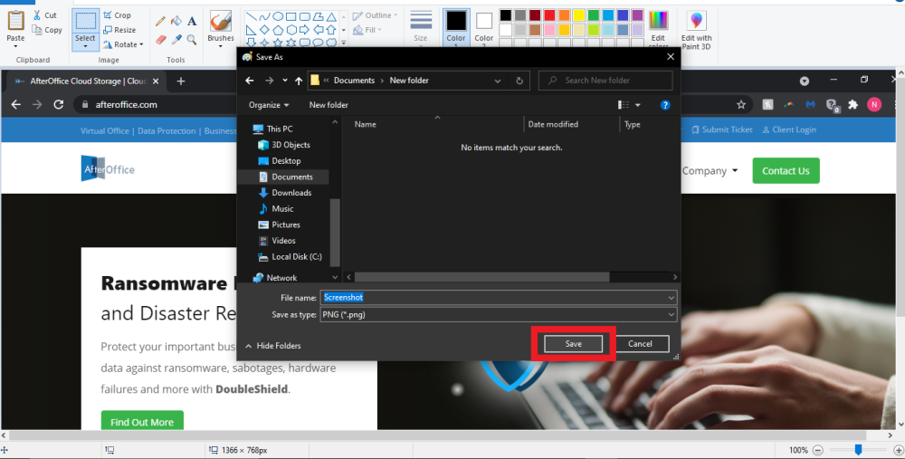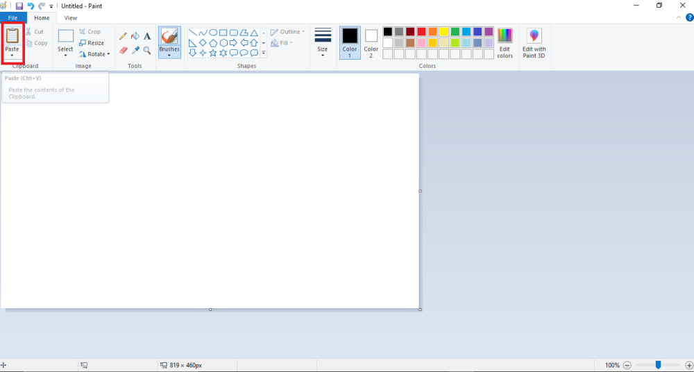 2. Open an image editing tool like Microsoft Paint, and paste the screenshot.
