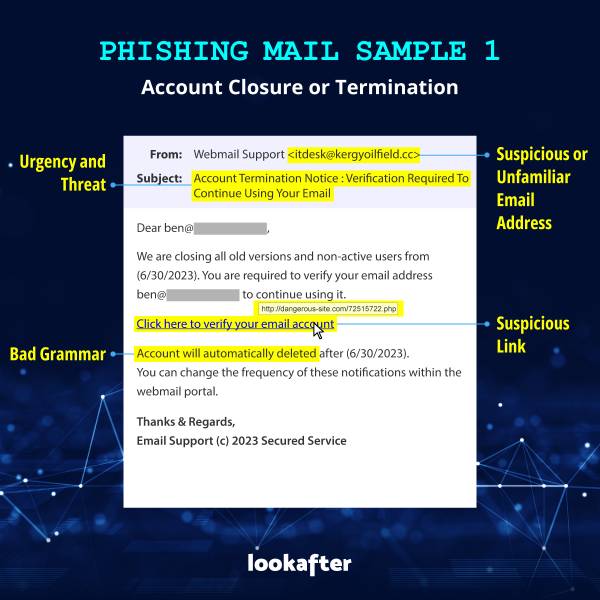 Home > FAQ > Security > General > Phishing Email Samples > Account Closure or Termination Scam