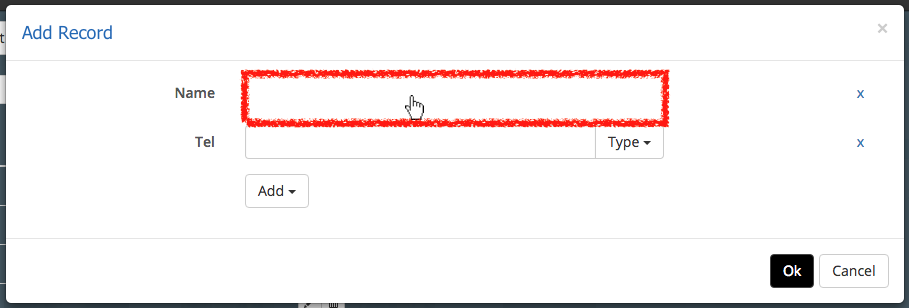 A “Add Record” window will be shown. First, click the empty area at the “Name” section.
