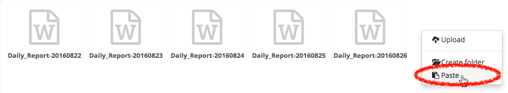 At the destination folder, right-click and any empty space and select the [Paste] action, as shown below. The files/folders will be copied to that particular location.