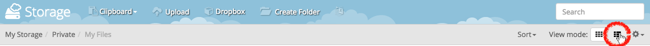 On Storage Center, you can choose to view your files and folders in grid view or list view. Your files are displayed in grid by default.