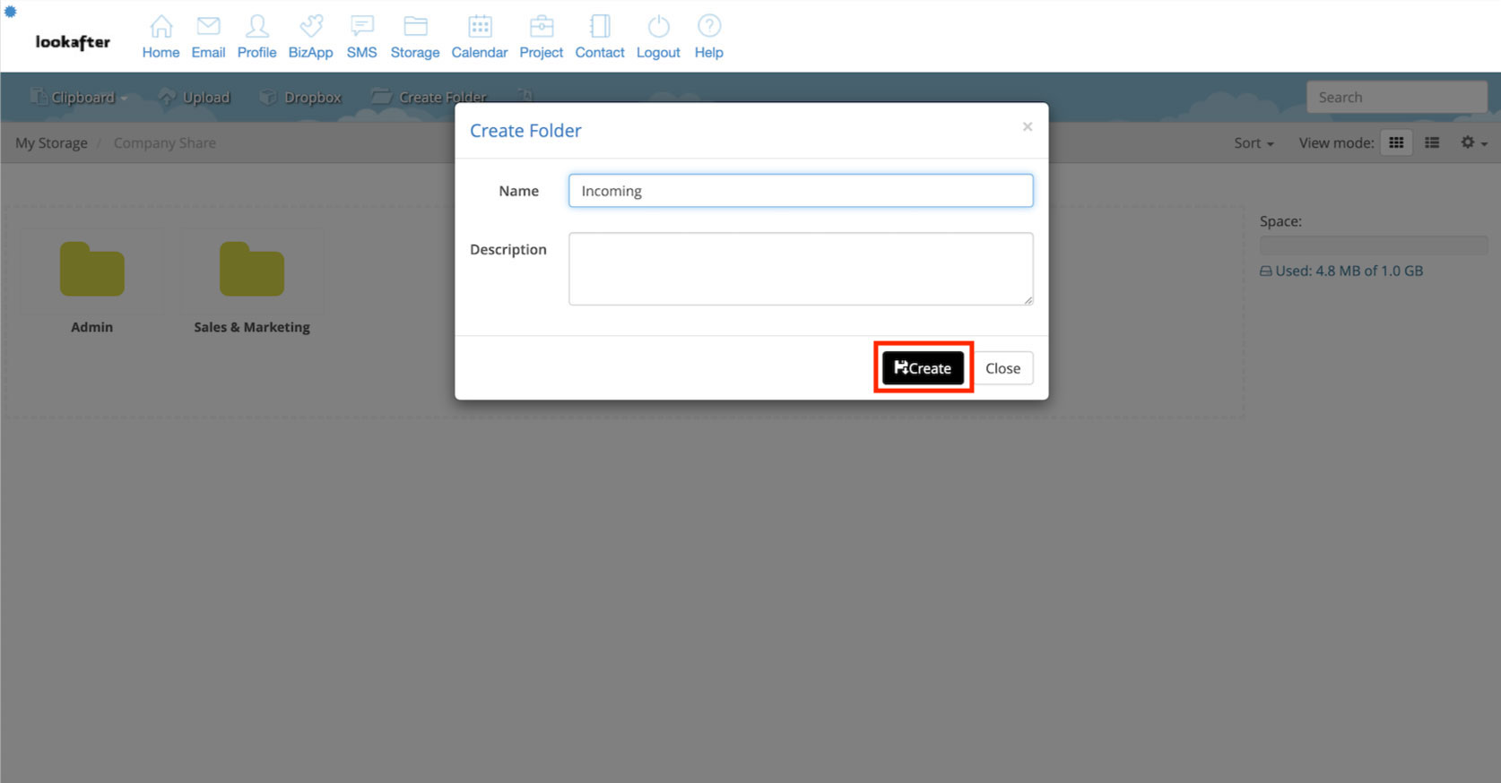 5. Create a sub folder “Incoming” within the Company Share folder (How to create a folder?).
