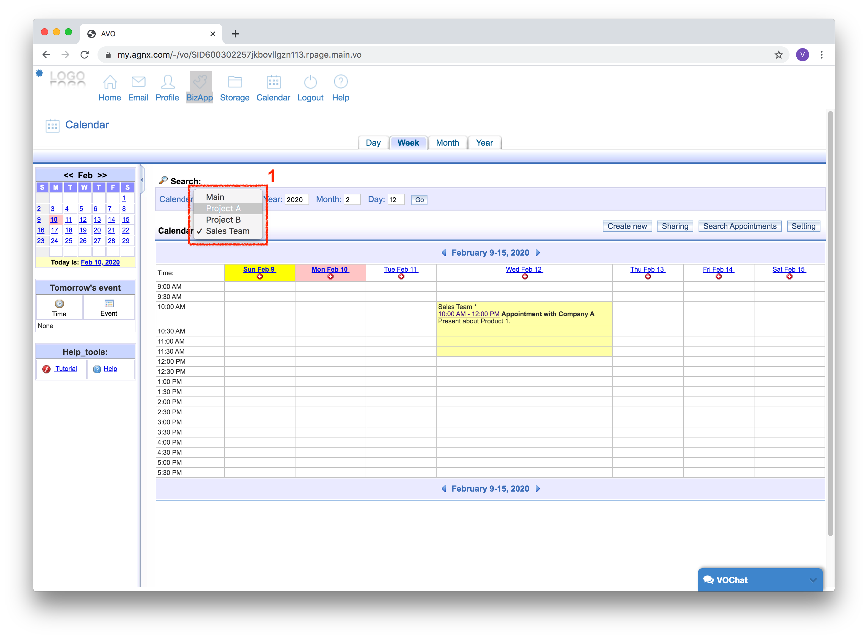 2. For example, to see the events for “Project A”, select it from the dropdown box, and click [Go].