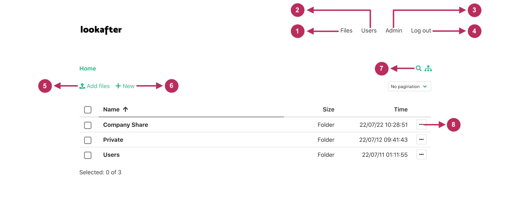 | 1 | Files (menu item) | Click this item to access all files and folders. |