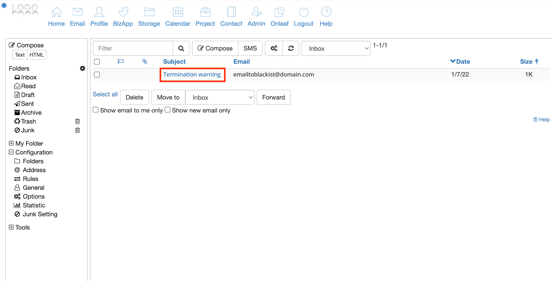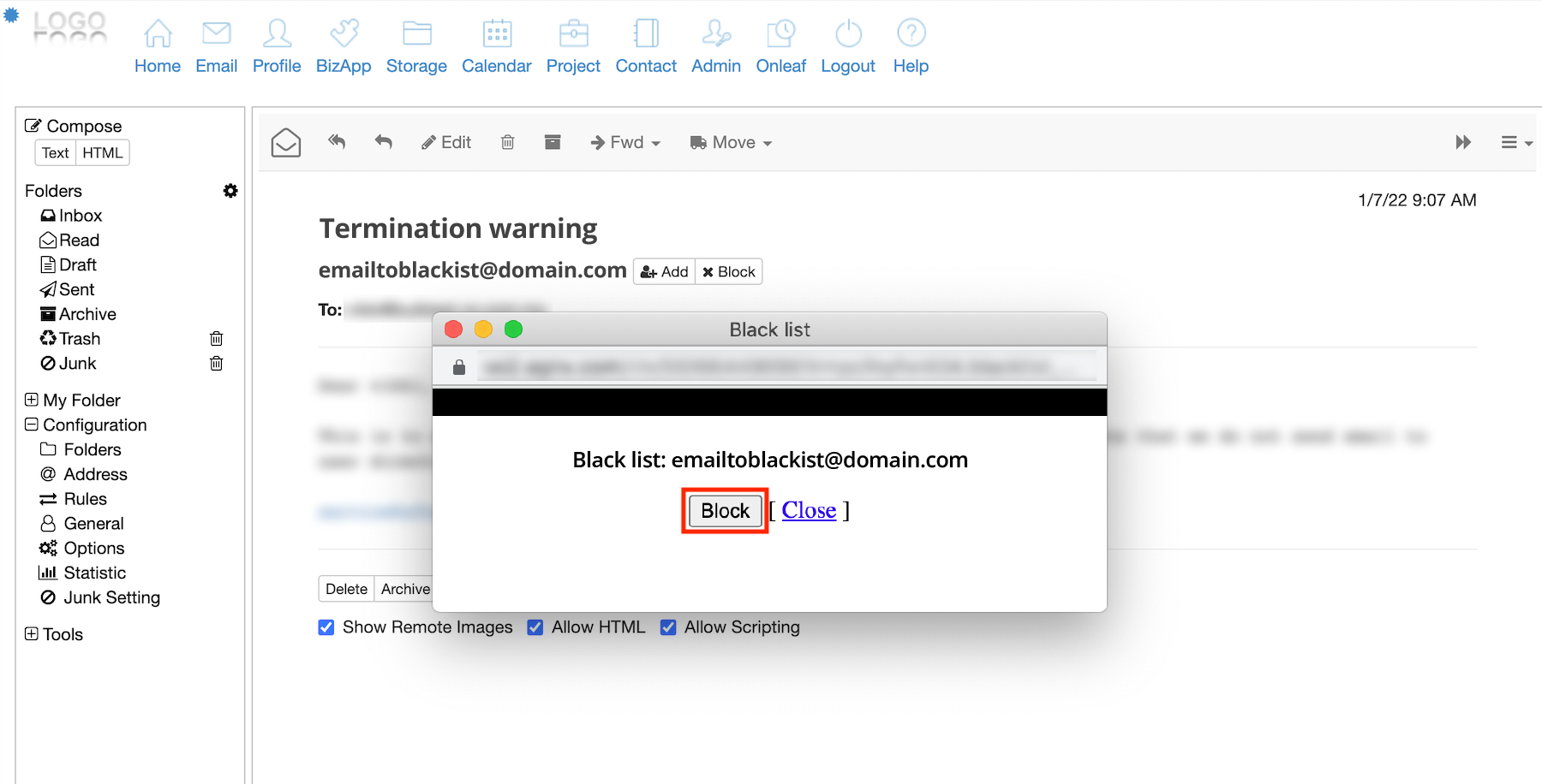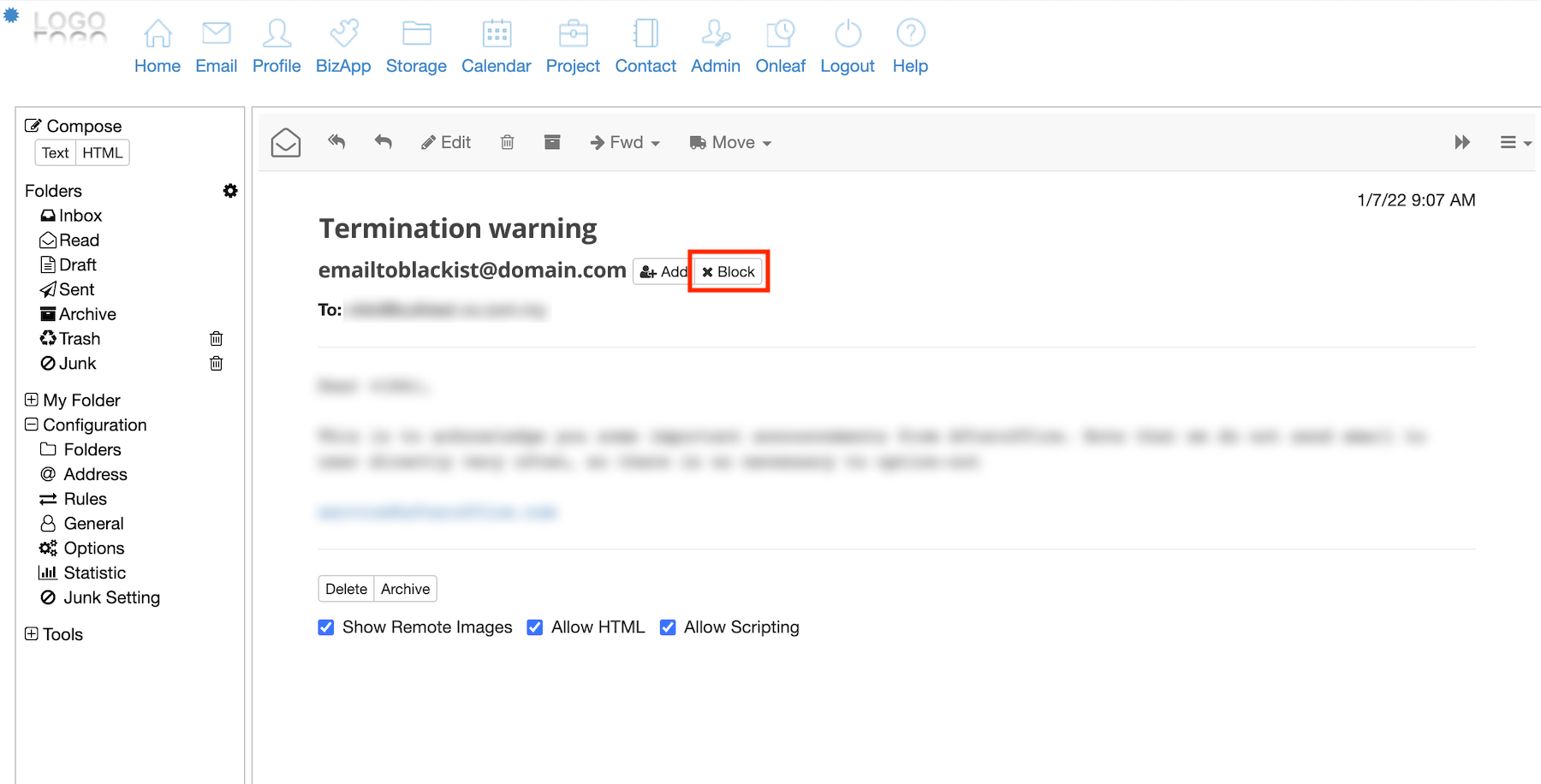 4.The sender email address will then be added into your blacklist option.