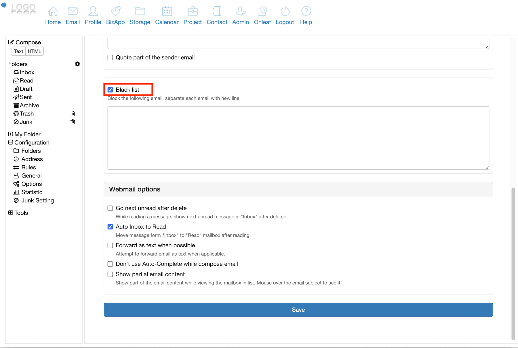 Home > FAQ > Email > Webmail > Blacklist a Sender Email Address on your Webmail