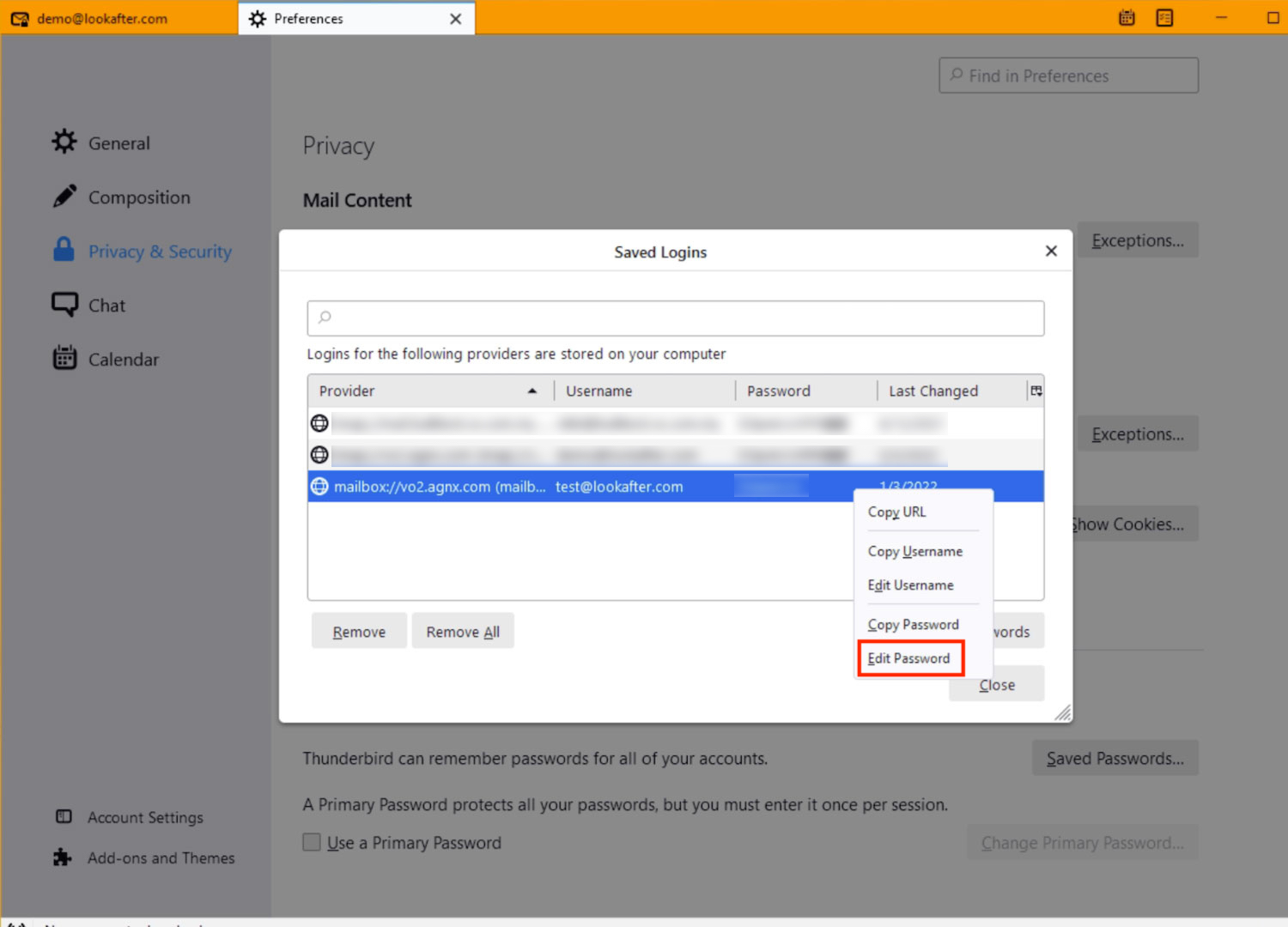 Home > FAQ > Email > Email Clients & Mobile > Other Settings and Configurations > How to change password of email account on Mozilla Thunderbird