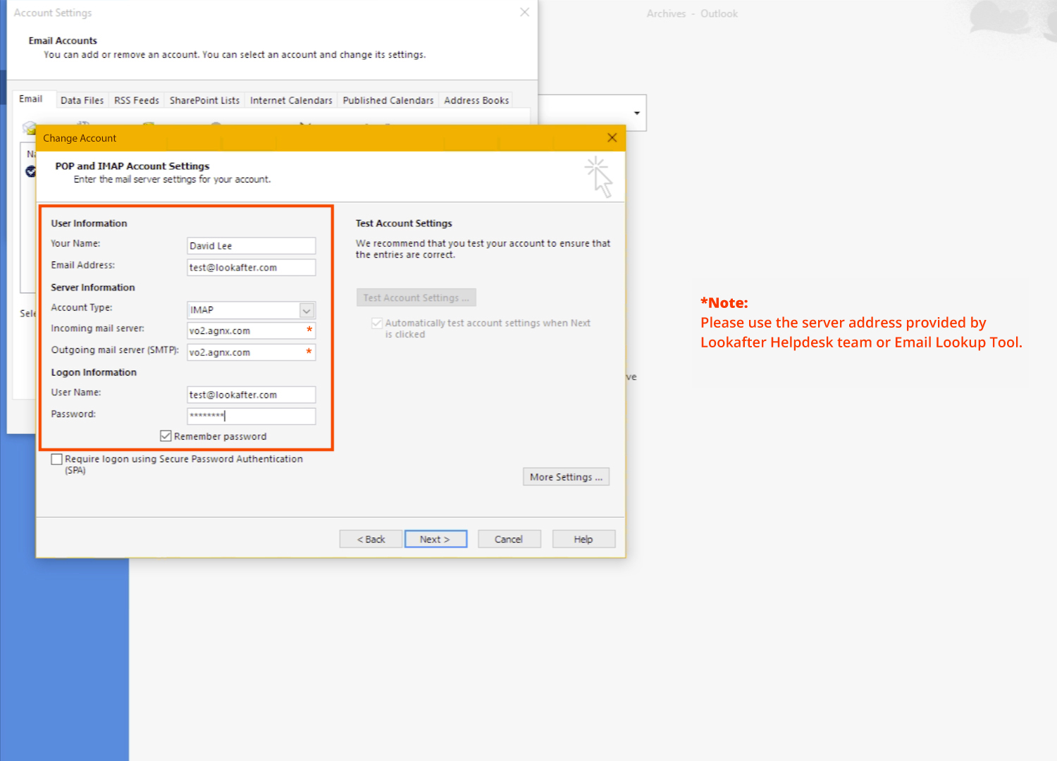 | Email Address: | (Enter your email address, e.g. test@lookafter.com) |