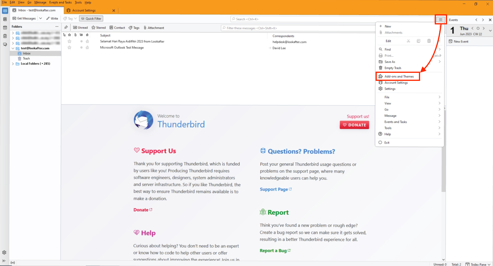 1. On your Thunderbird, click the grid icon at the top right corner and select Add-ons and Themes from the drop-down menu.