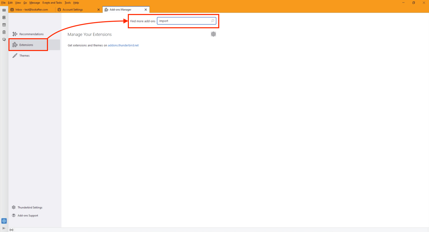 2. An “Add-ons Manager” tab will be opened. Here, select Extensions from the left menu panel. Then, type in “import” in the search field and click Enter.