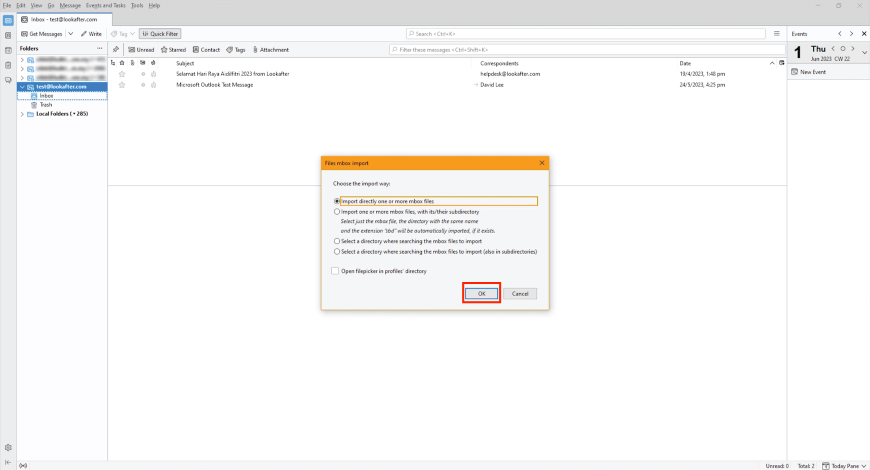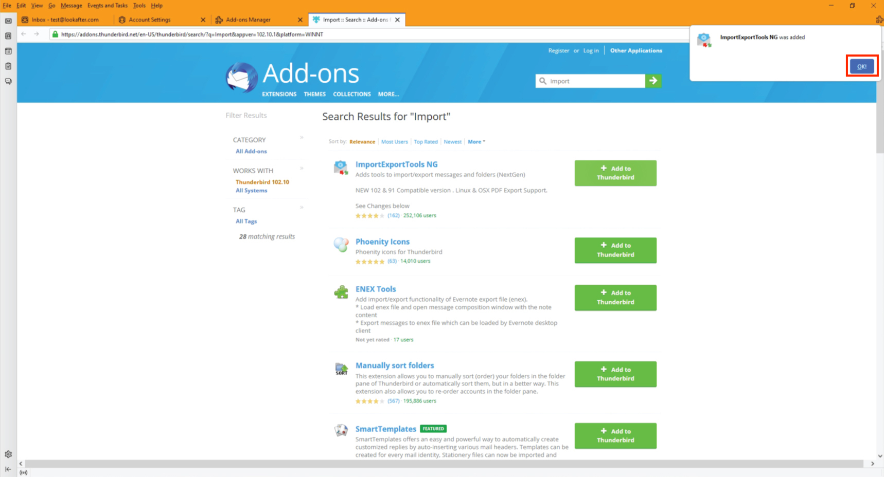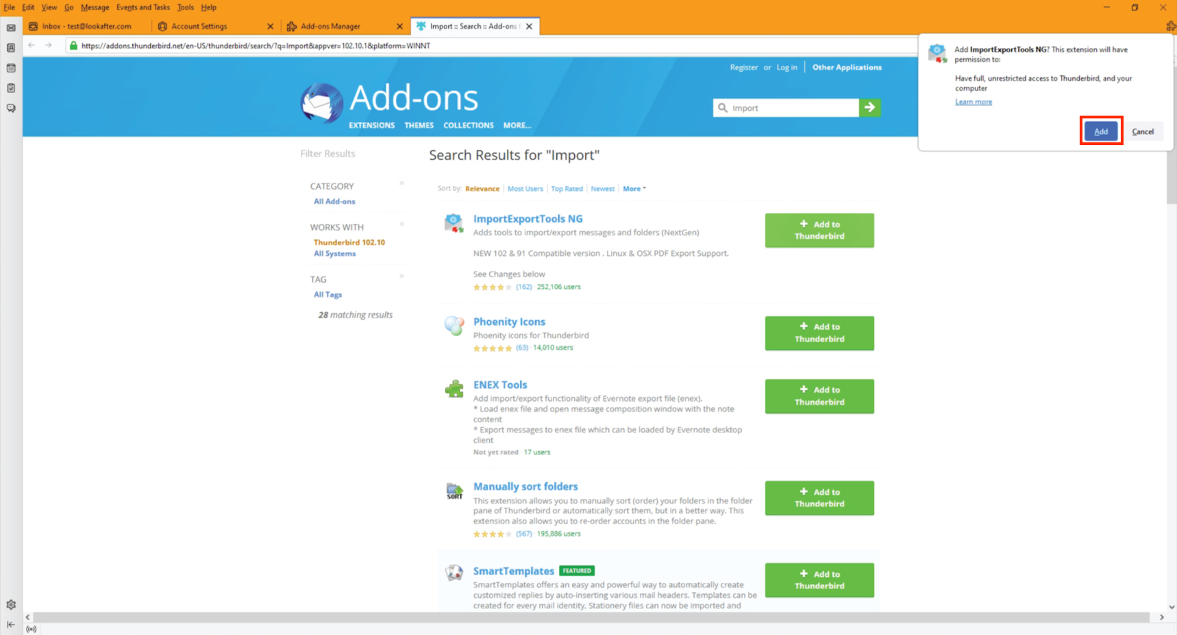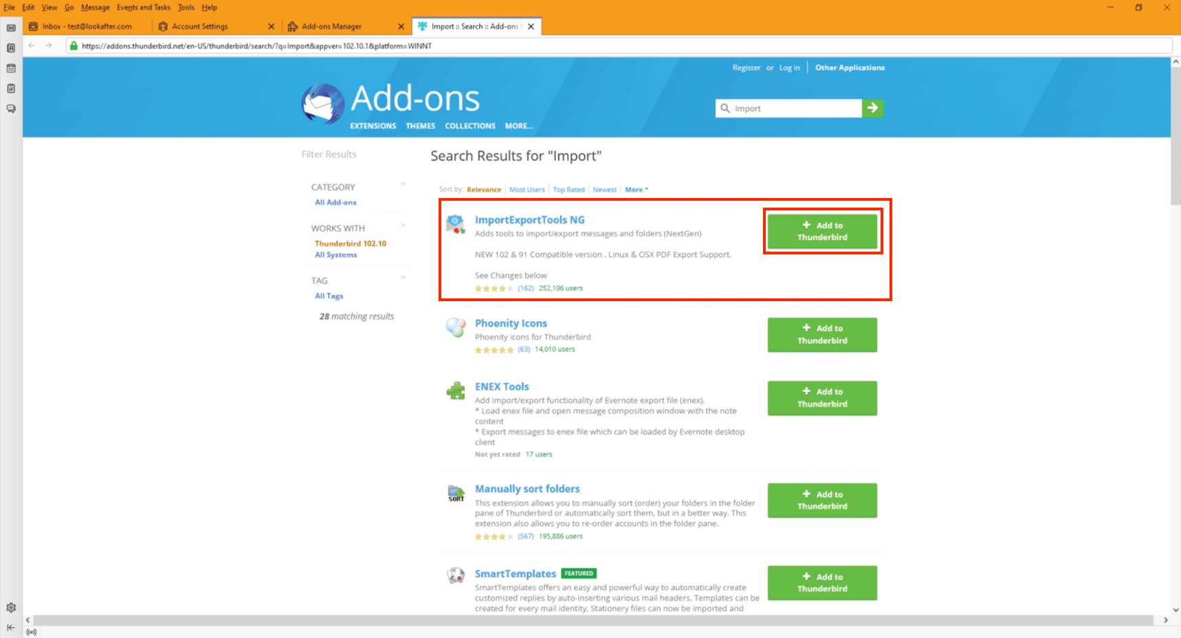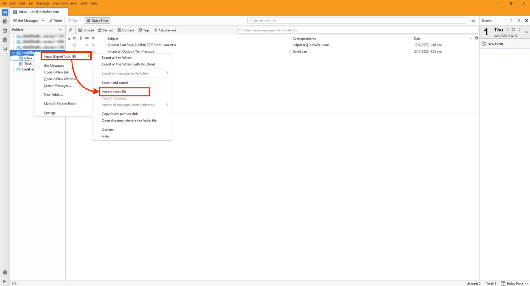 Pre-requisite: To import .MOBOX files into Thunderbird, you will need to install a third-party import add-on called ImportExportTools NG.