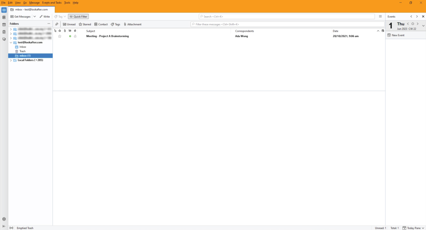 9. A new folder containing the emails from the mbox file will be created. You can then rename this folder, or move emails from this folder to your desired destination folder.