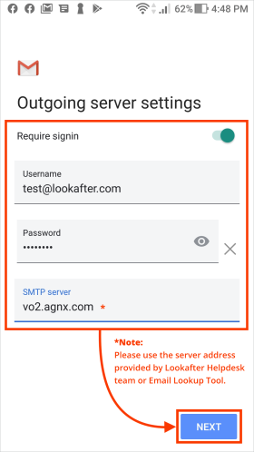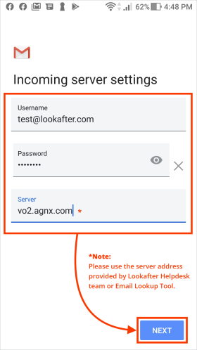 | Server | vo1.agnx.com / vo2.agnx.com / g1.agnx.com IMPORTANT: To confirm which server to be used for your domain, please use the Email Lookup Tool or consult Lookafter Helpdesk. |