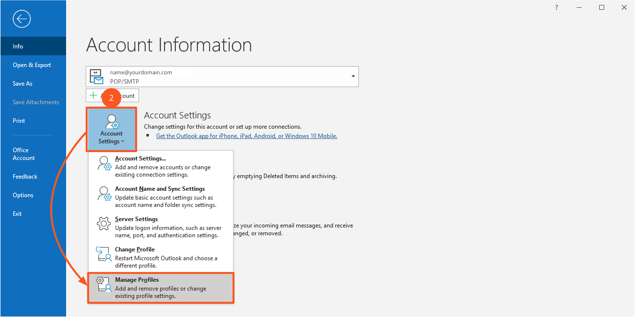 3. On the “Mail Setup - Outlook” window, click on [Email Accounts].