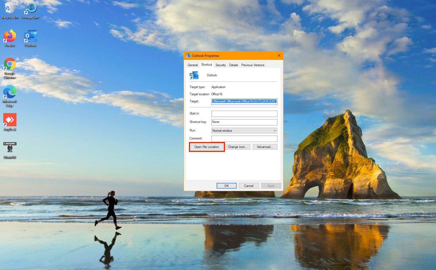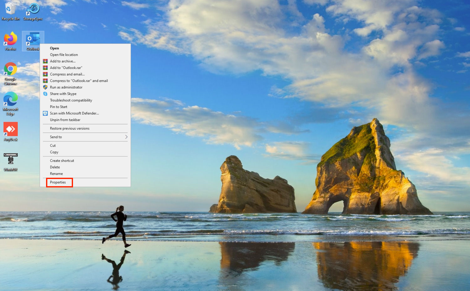 1. Right-click on the Outlook shortcut icon, and select Properties.